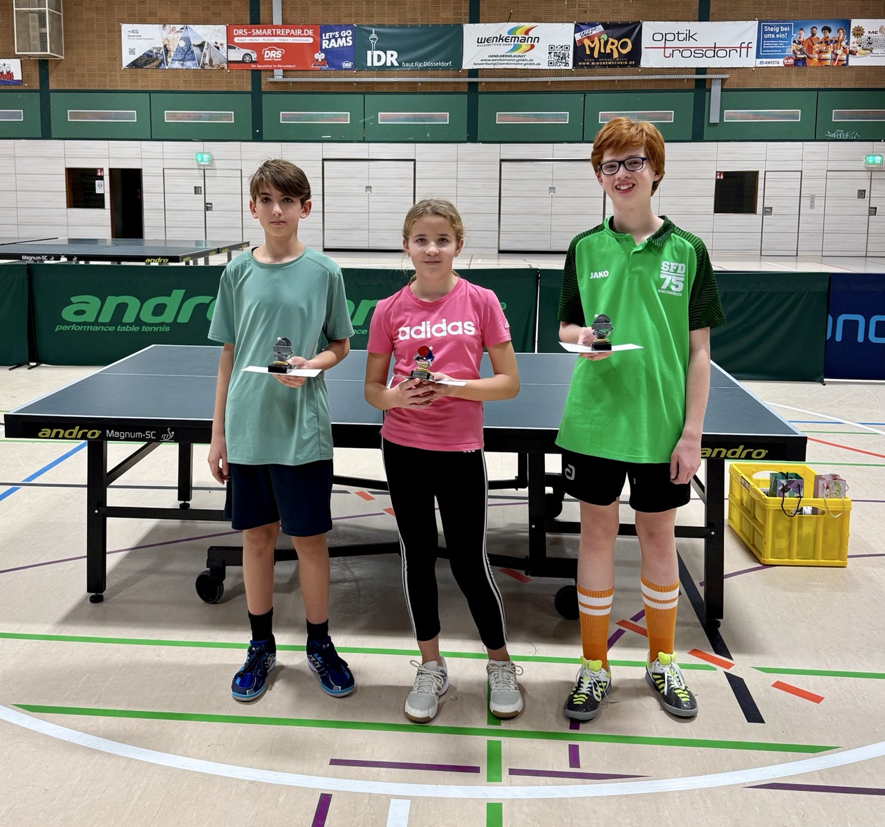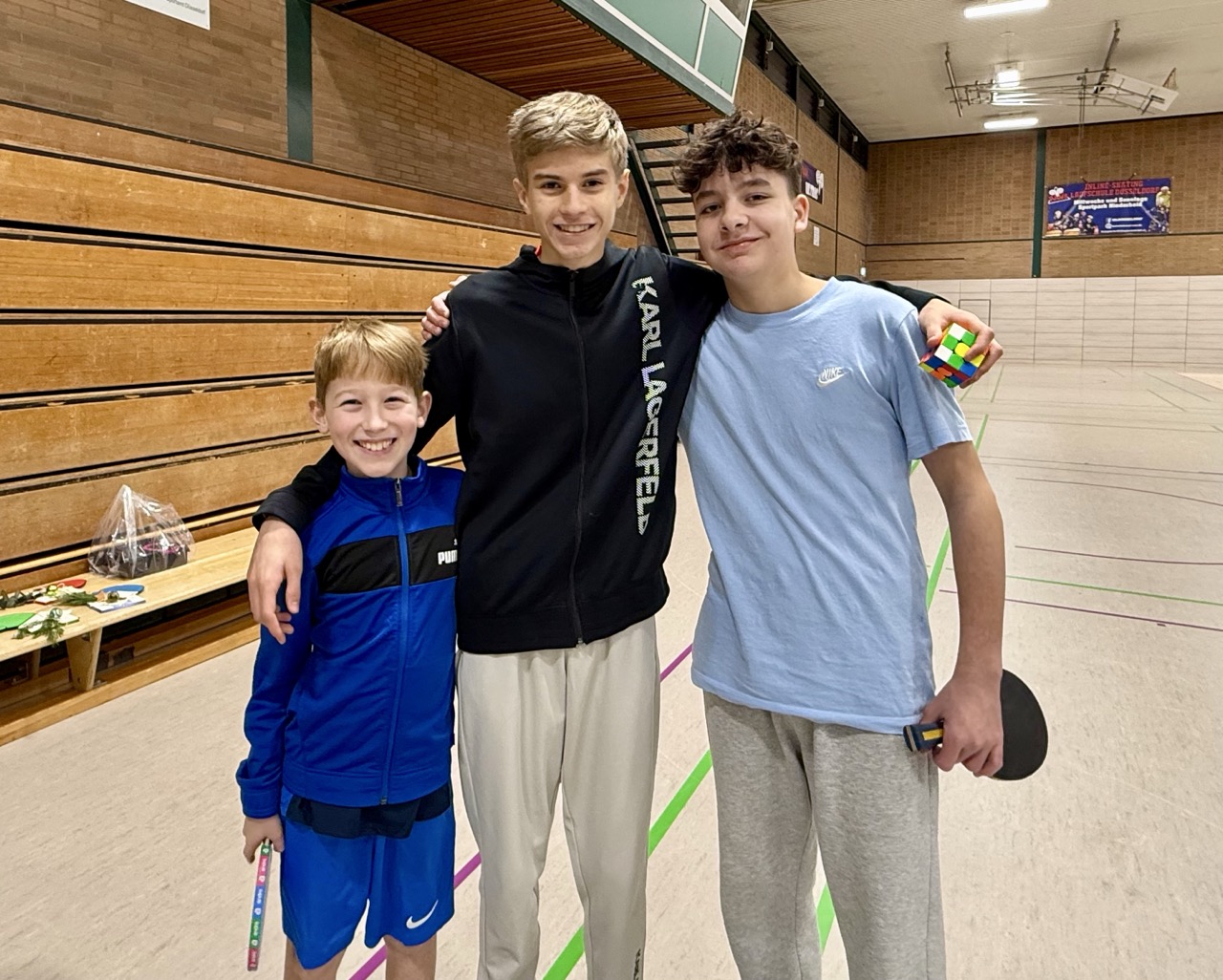Danach ging es an die Tische, wo spannende und faire Spiele ausgetragen wurden. Nach den beiden Gruppenphasen konnten sich Emma, Mattis, Bent und Emil für das Halbfinale qualifizieren. Am Ende setzte sich Emil vor Bent und Emma durch.  Herzlichen Glückwunsch an alle für die tolle Leistung !