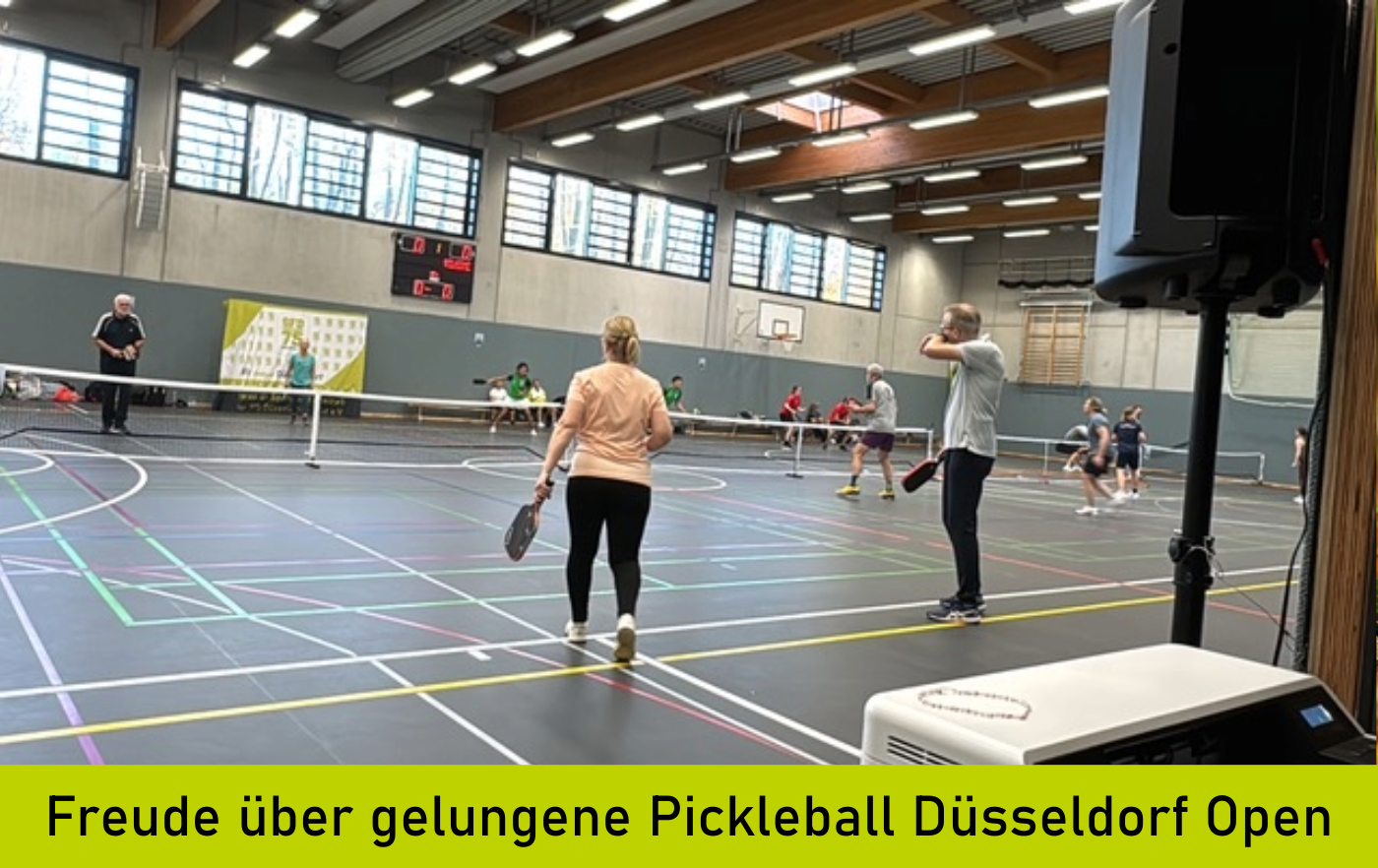 Unsere Pickleball-Abteilung hat die ersten Düsseldorf Open organisiert und die Abteilungsleiter Kristine und Dieter Mundschenk sind mit dem Turnier an der Melanchthonstraße sehr zufrieden: „Wir sind stolz und froh, dass alles gut gelaufen ist.“ Mit über 100 Teilnehmerinnen und Teilnehmern waren die Macher sehr zufrieden: „Wir freuen uns über tolle Spiele, nette Gäste, keine Verletzungen und viel positives Feedback. Ich bedanke mich bei unseren vielen fleißigen Helfern, den Kuchen- und Waffelbäcker*innen und unseren Sponsoren!“