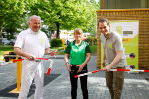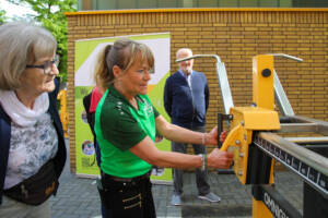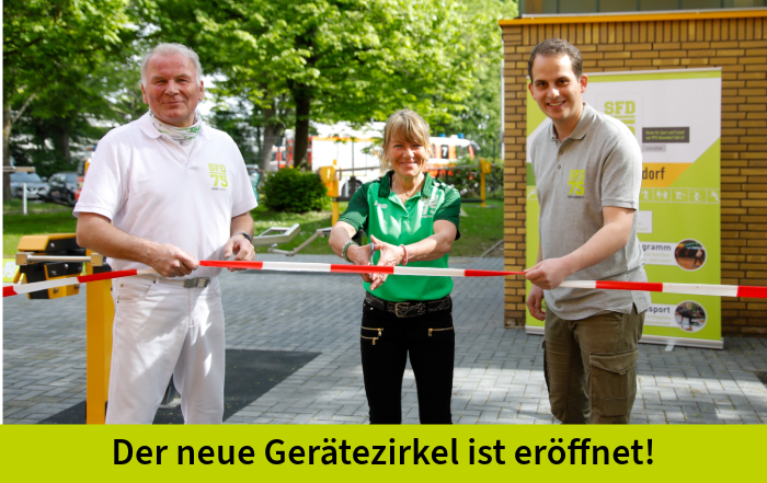 Gemeinsam mit den SFD-Geschäftsführern Dr. Michael Görlach und Fabian Reismann hatte sie zur Eröffnung das Baustellenband durchgeschnitten und die neue Anlage im Beisein unserer Präsidentin Katrin Steinbüchel und unseres Vizepräsidenten Loert de Riese-Meyer in Betrieb genommen. Der Clou: Die Geräte sind auch behindertengerecht und mit Rollstuhl nutzbar.