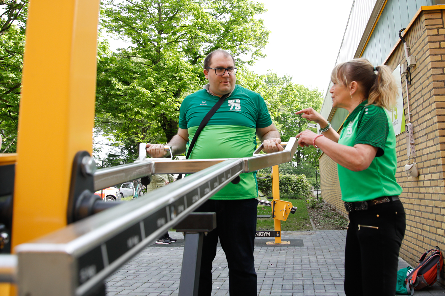 Kniebeugen, Bizepstraining, Rückenkräftigung! Dafür müssen Sportler und Sportlerinnen künftig nicht mehr ins Fitness-Studio, das ist auch im Sportpark Niederheid möglich. Wir haben am Samstag, den 13. April, den neuen Outdoorfitnessgerätezirkel im Sportpark Niederheid in Betrieb genommen. Viele Mitglieder kamen zur Eröffnung und haben die neuen Sportgeräte gleich ausprobiert, unsere Trainerin Susanne Rehaag stand mit Rat und Tat zur Seite.
