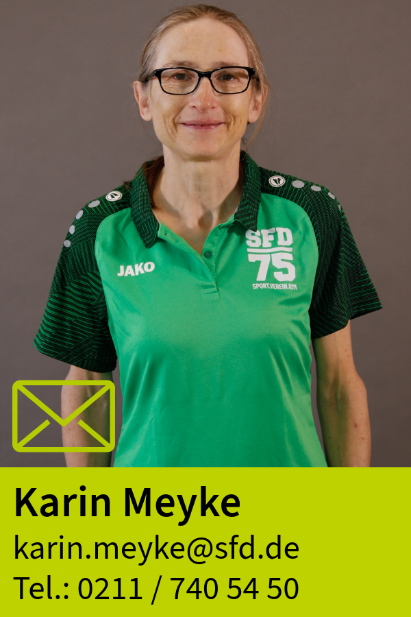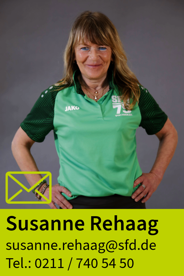 Susanne Rehaag informiert über die vielfältigen Sportmöglichkeiten im SFD ´75, organisiert alles rund um Kursbuchungen und Bescheinigungen für die Krankenkassen.