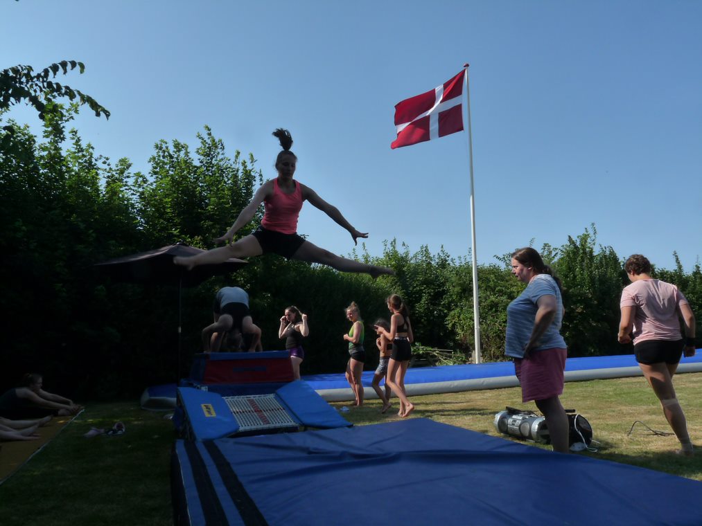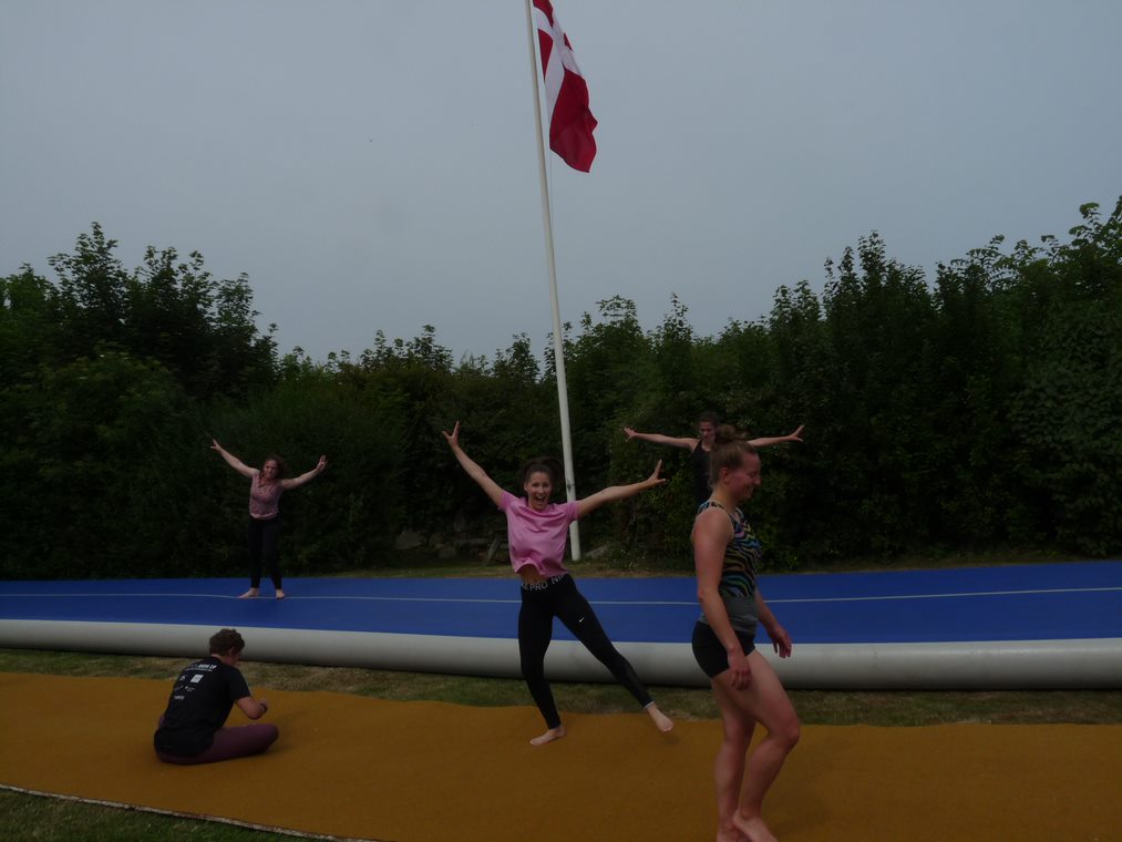 Wie in jedem Jahr fand dieses Jahr endlich wieder unser Trainingslager in Dänemark statt, übrigens zum 15 Mal. Nach langer Corona-Pause haben sich alle Turnerinnen auf dieses Highlight des Jahres sehr gefreut. Wir starteten am Sonntag in aller Frühe mit drei Fahrzeugen und insgesamt 22 Teilnehmern in Richtung Norden. Einige Turnerinnen (die Jüngste 7 Jahre alt) fuhren zum ersten Mal mit. Die Anlage in Dänemark fanden wir wie gewohnt in gutem Zustand vor. Sie ist einmalig gelegen direkt an der Ostsee mit Blick aufs Meer und ausgestattet mit einer Außenturnanlage mit Großtrampolin und Schnitzelgrube, Airtreck, und Außenreck. Alles unter freiem Himmel!! Welche Turnerin hat schon die Möglichkeit Riesenfelgen in den blauen Himmel zu turnen. Das ist für eine Indoor-Sportart wirklich einzigartig!!! Unsere dänischen Turnfreunde vom OGF Odense haben sich da wirklich etwas ganz Besonderes einfallen lassen.