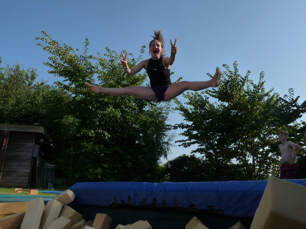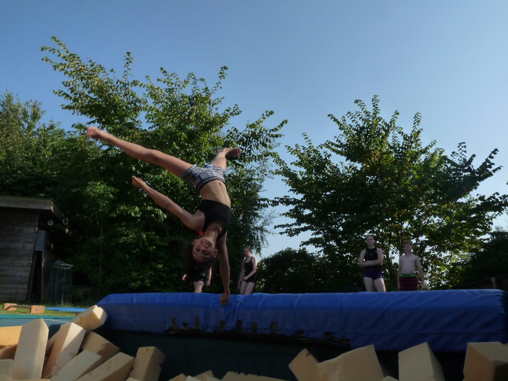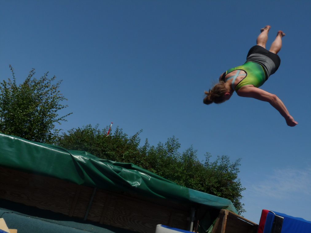 … ein bisschen Glück mit dem Wetter muss man allerdings haben… der Wettergott war auf unserer Seite und wir hatten nicht einen Regentag! So konnten wir die komplette Woche zum Training gut nutzen. Neben neu erlernten Elementen haben alle Turnerinnen ihre Elemente weiter geübt und gefestigt. Die tägliche Joggingrunde und unser Lagertanz durften auch nicht fehlen. Nach so viel Sport hat man sich das leckere Essen wirklich verdient… alles frisch gekocht mit täglich frisch gebackenem Kuchen fährt manch alter Hase schon allein des guten Essens wegen immer wieder gerne mit.