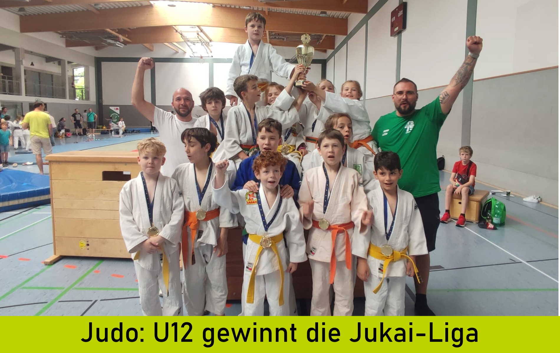 Unser U12-Team gewinnt mit sieben Siegen und einem Unentschieden die Jukai-Liga 2024.Mit 5 Siegen und einem Unentschieden aus den ersten drei Kampftagen starteten unsere Judoka mit dem zweiten Tabellenplatz ins Finale der Jukai-Liga. Hier warteten neben dem Osterrather TV, die erstplatzierten und bisher ungeschlagenen Judokas der SG Kaarst.