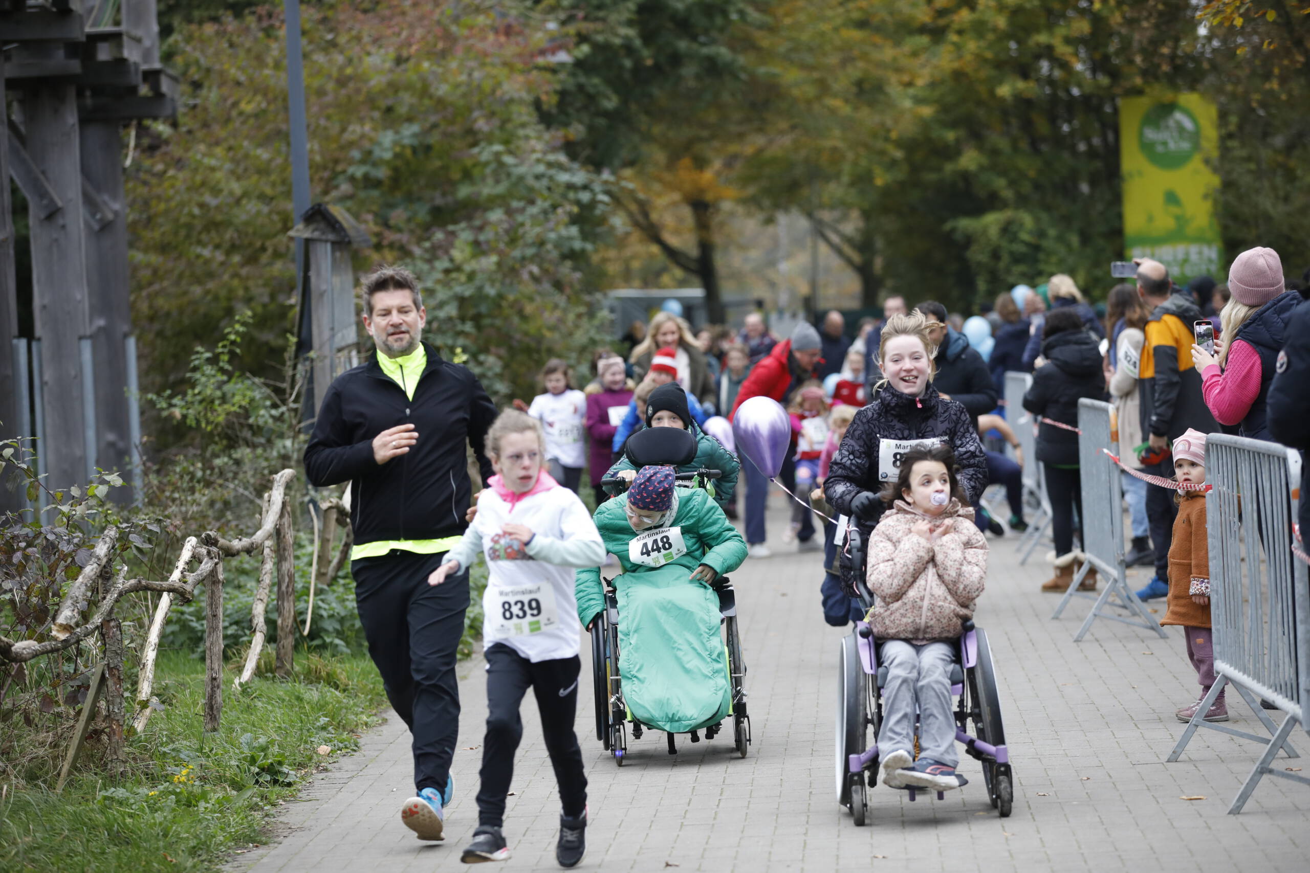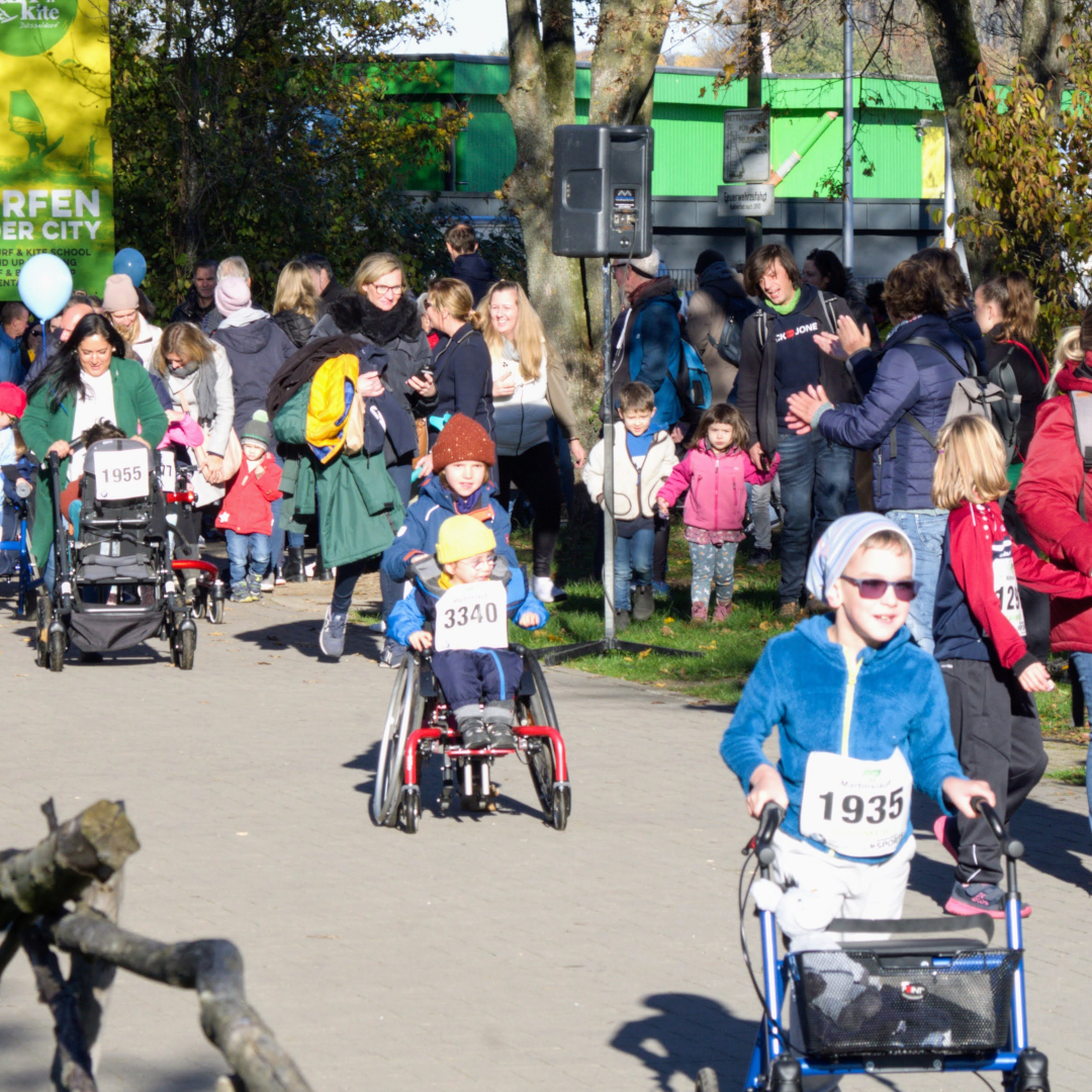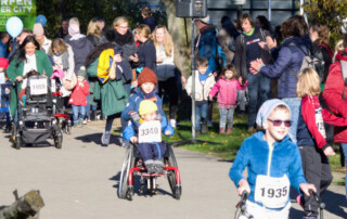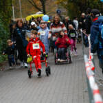 Nach den Kinderläufen fand der 150 Meter lange Inklusionslauf statt, bei dem 60 Teilnehmer an den Start gingen und im eigenen Tempo mit Rollstuhl oder Gehhilfe der Lauf selbstständig absolvieren konnten. Dafür gabs im Ziel eine verdiente Medaille.