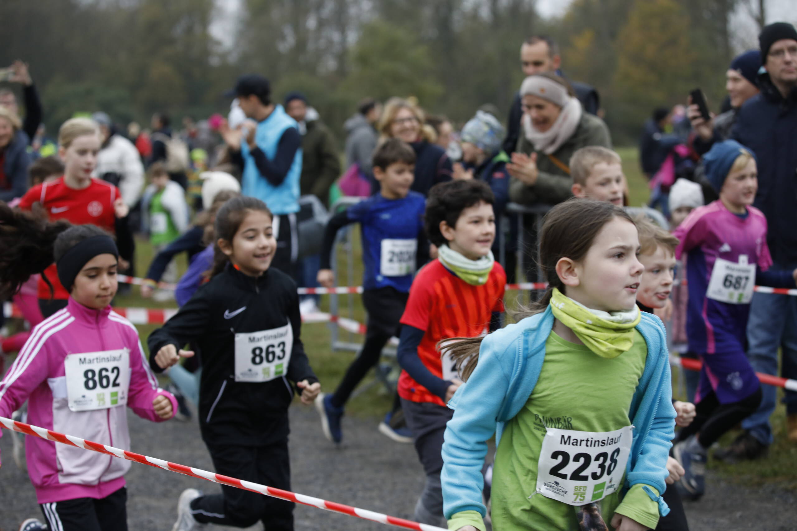 Morgens um 9 Uhr hingen noch düstere Wolken am Himmel über dem Unterbacher See. Nieselregen plätscherte aufs Gras. Es sah nicht gut aus für den 47. Martinslauf des SFD ´75. Doch Regen und SFD, das passt nicht zusammen. Und so konnten pünktlich zum ersten von insgesamt zehn Rennen die Regenschirme zugeklappt werden. Mit dem ersten Startschuss um 9.30 Uhr ging es Schlag auf Schlag. Erst starteten die Jugendläufe über zwei Kilometer, danach durften die Bambini über 700 Meter ran. Geschenkt wurde sich nichts, jede Starterin und jeder Starter kämpften um jede Sekunde und hatten am Ende meist noch Kraft für einen Zielsprint.