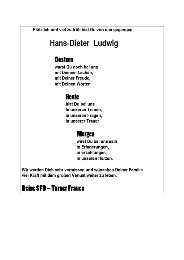 Nachruf: Hans-Dieter Ludwig sfd-master2018-08-15T15:19:58+02:0023. Februar 2016| Ähnliche Beiträge Ungeschlagen Meister Holpriger Start, starke Unterstützung: Die Jugendabteilung nimmt Fahrt auf! 6 Medaillen beim Kreispokalturnier in Nievenheim Nächste Gesundheitswanderung 2025