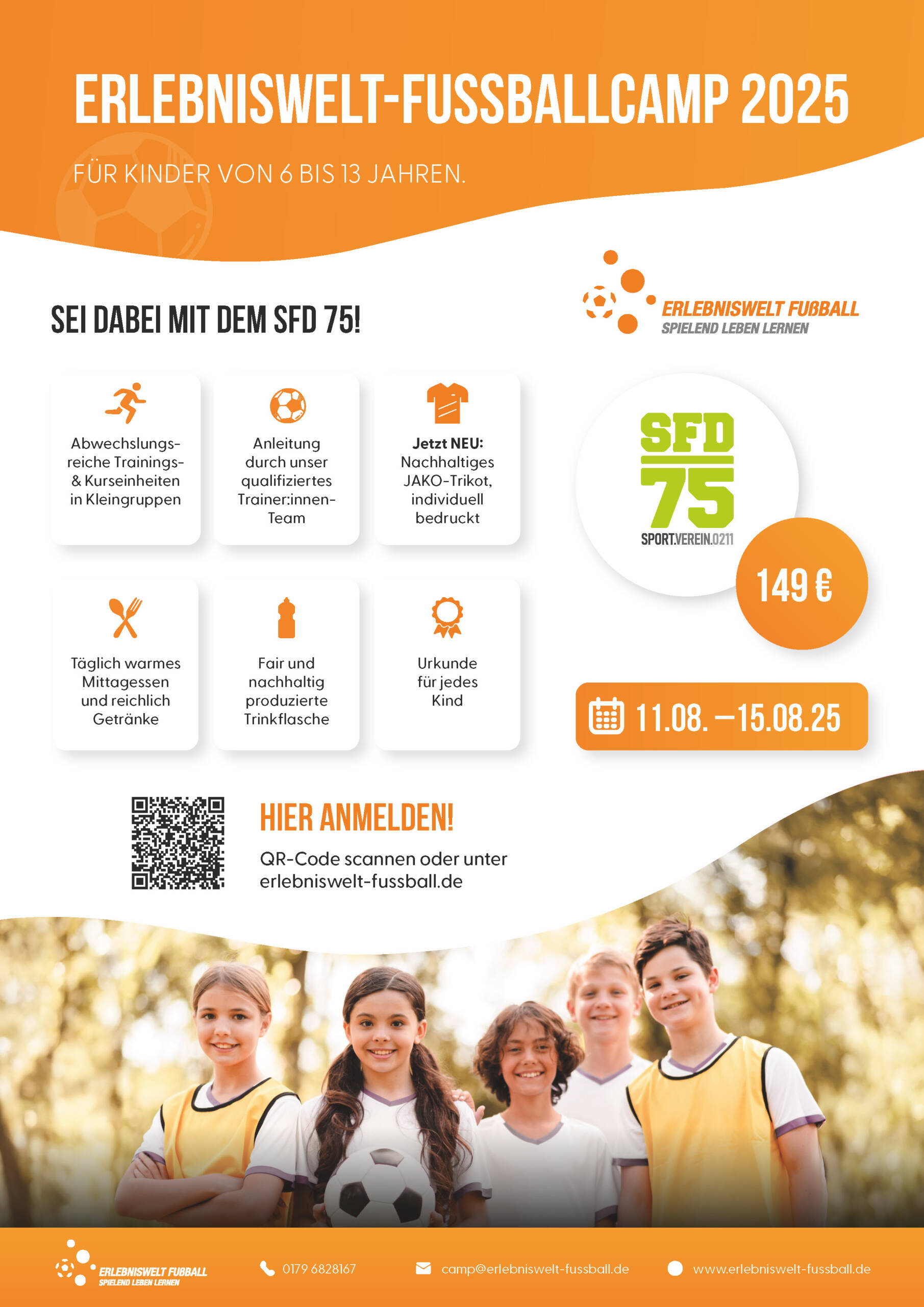 Anmeldung unter: https://erlebniswelt-fussball.de/produkt/erlebniswelt-fussballcamp-sfd-75-11-08-15-08-2025/