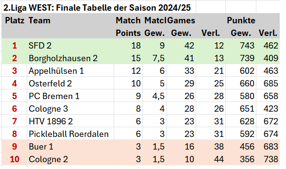 Die 2. Mannschaft hatte sich damit auch für das erstmals ausgetragene Finalturnier der Ligen West und Süd qualifiziert. In Friedrichsdorf im schönen Hessen wurde anschließend um den Titel „Deutscher Pickleball Team Meister Liga 2“ gespielt. Das Halbfinale konnte unser Team noch deutlich für sich entscheiden, musste sich im Finale jedoch leider geschlagen geben. Dennoch dürfen wir uns erster „Deutscher Vizemeister“ in der noch jungen Pickleball-Geschichte Deutschlands nennen – ein Titel, den wir mit Stolz nach Hause gebracht haben.