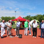 In der Fitness Halle gab es die ganze Feier durch Vorführungen unserer Freizeitabteilung. Auf der Tartanbahn zeigten zwischendurch unsere Karateka sowie die Turnerinnen, was ihren Sport ausmacht. Und immer wieder spielte die Band „Two of us“ Hits am Fließband.
