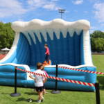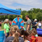 Vor allem Kinder hatten ihren Spaß. Dafür haben auch unsere Partner gesorgt. Die Bädergesellschaft hatte einen großen Swimmingpool aufgebaut, allerdings nicht zum Schwimmen sondern zum Plantschen oder um mit Power Paddlern über das Wasser zu fahren. Unser Gesundheitspartner Barmer hatte große Dartscheiben für Fußbälle und Wurfspiele dabei und vor allem eines der wichtigsten Geräte des ganzen sonnigen Tages: Einen Sonnencremespender.
