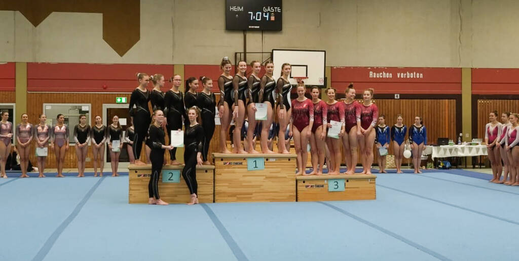 Am Boden erturnten alle 4 Turnerinnen gute Wertungen und waren somit die stärkste Mannschaft des gesamten Durchgangs mit ebenfalls der höchsten Wertung an diesem Gerät. Nun musste nur noch der Sprung gemeistert werden. Auch dies gelang den Turnerinnen und sie wurden am Ende mit einem tollen 3. Platz belohnt. Ein gelungener Auftakt in der höheren Liga, wenn auch mit anfänglichen Schwierigkeiten.